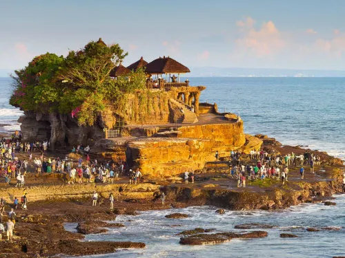 FULL DAY TANAH LOT - ULUWATU TEMPLE TOUR (Private Basis): After breakfast , your Private Tour begins by heading north to Tanah Lot Temple, famous for its dramatic setting on a rock formation surrounded by the sea. In the afternoon, you will travel south to Uluwatu Temple, majestically perched atop a steep cliff overlooking the Indian Ocean. As the sun begins to set, you have the option to enjoy the traditional Balinese Kecak Fire Dance.
