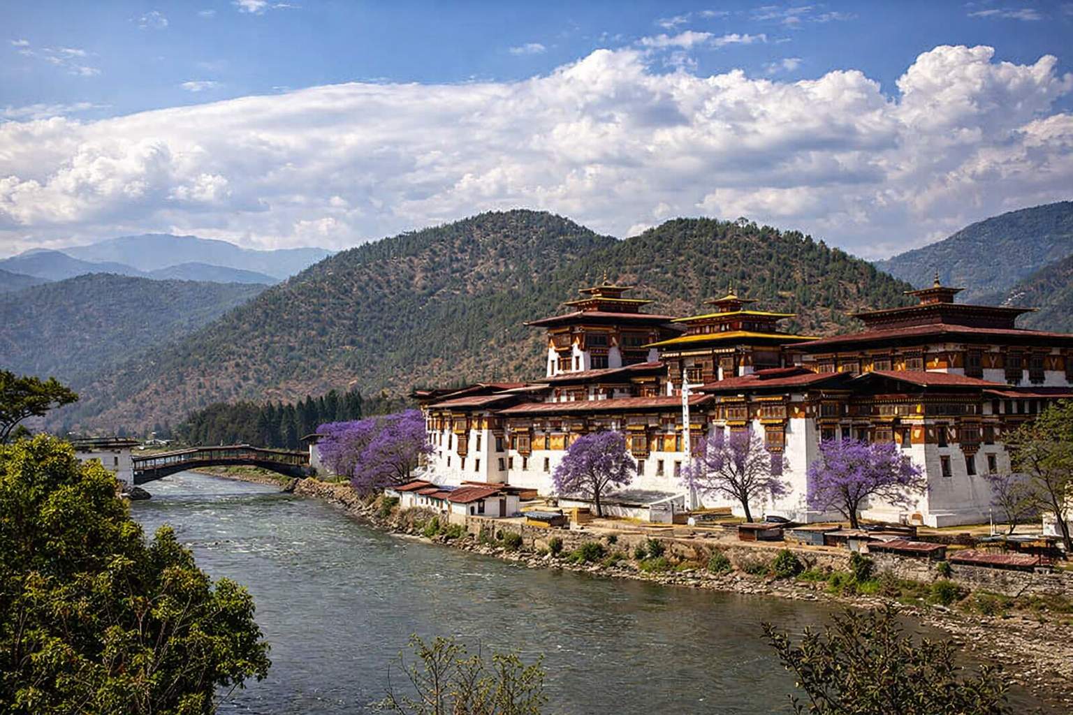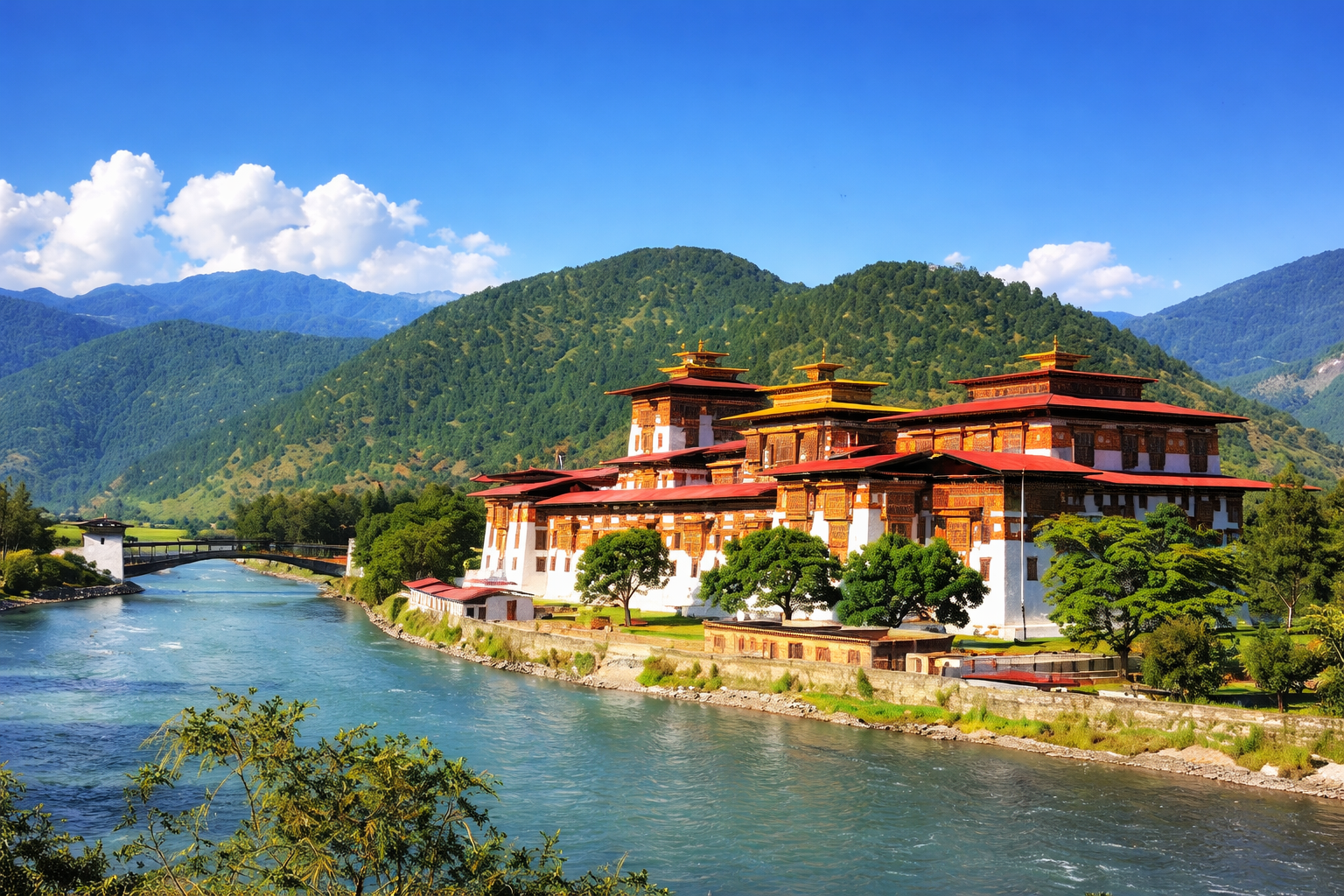 Embark on a breathtaking journey from Thimphu to the ancient capital of Punakha, one of the most sought-after destinations in every Bhutan tour package. This scenic drive takes you through the iconic Dochula Pass (3,100 meters), a must-visit viewpoint offering panoramic 360-degree views of the Himalayan mountain range, including snow-capped peaks on clear days. Capture stunning photos of the 108 chortens at Dochula Pass, making it a top highlight for travelers searching for Bhutan sightseeing places, Bhutan honeymoon destinations, and Bhutan photography spots. Continue your journey descending into the lush, sub-tropical Punakha Valley, known for its pleasant climate and scenic beauty. Visit the magnificent Punakha Dzong, often ranked among the most beautiful dzongs in Bhutan. Located at the sacred confluence of the Pho Chhu and Mo Chhu rivers, this architectural masterpiece is a key attraction in all Bhutan holiday packages and Bhutan cultural tours. Experience a peaceful walk across the famous Punakha Suspension Bridge, one of the longest suspension bridges in Bhutan, adorned with fluttering prayer flags and offering mesmerizing river valley views—perfect for Bhutan adventure travel and Bhutan Instagram spots. After exploring Punakha’s top attractions, enjoy a scenic return drive to Thimphu for your overnight stay, completing an unforgettable day filled with Bhutan sightseeing, Himalayan views, and cultural exploration.