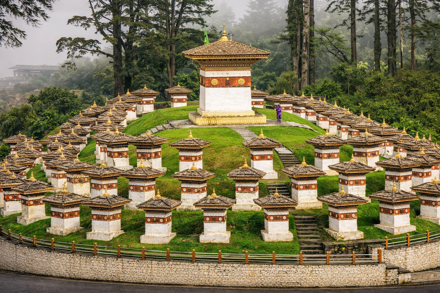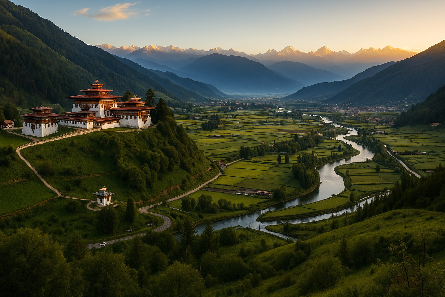 After completing immigration formalities at the Bhutan border, begin your scenic journey toward Thimphu, Bhutan’s charming capital city—famously known as the only capital in the world without traffic lights. This Phuentsholing to Thimphu road trip is one of the most breathtaking Himalayan drives, making it a highlight of every Bhutan tour package and Bhutan travel itinerary. As you ascend through the Eastern Himalayas, enjoy panoramic views of lush green valleys, cascading waterfalls, winding mountain roads, and pristine river landscapes. The route is surrounded by dense pine and coniferous forests, offering a refreshing escape into nature—perfect for travelers seeking a peaceful and scenic Bhutan holiday experience. On arrival in Thimphu, you’ll be welcomed by cool mountain air, clean surroundings, and a unique blend of traditional Bhutanese culture and modern lifestyle. Unlike other bustling capitals, Thimphu offers a calm, traffic-free environment, making it an ideal destination for a relaxing Bhutan city tour. Check into your hotel and spend the evening at leisure—explore nearby markets, enjoy authentic Bhutanese cuisine, or simply unwind amidst the serene Himalayan ambiance. This day sets the tone for your unforgettable Bhutan trip, combining natural beauty, cultural charm, and peaceful surroundings—perfect for couples, families, and nature lovers looking for the best Bhutan vacation package.