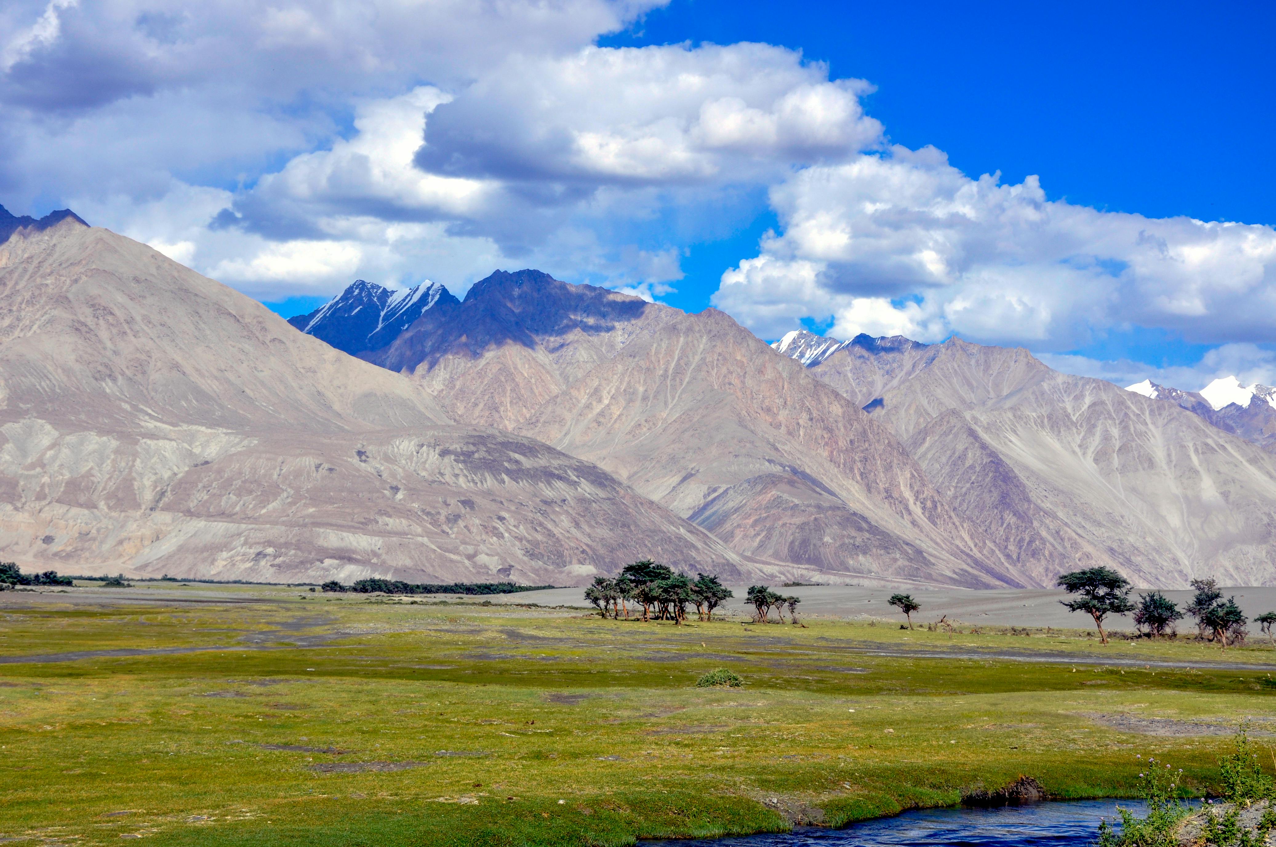 Embark on an unforgettable journey from Leh to the mesmerizing Nubra Valley via the iconic Khardung La Pass, one of the highest motorable roads in the world at an altitude of 18,380 feet. This thrilling drive offers panoramic views of snow-capped Himalayan peaks, winding mountain roads, and dramatic landscapes that make Ladakh a dream destination for travelers. As you descend from Khardung La into Nubra Valley, often referred to as the “Valley of Flowers of Ladakh,” witness a stunning contrast of terrain—from barren mountains to lush riverbeds nourished by the Shyok and Nubra rivers. Upon arrival, check into your hotel or luxury desert camp and take some time to relax amidst the serene surroundings. In the afternoon, head to the famous Hunder Sand Dunes, a unique cold desert set against the backdrop of towering mountains. Experience a once-in-a-lifetime camel safari on rare double-humped Bactrian camels, a distinctive attraction found only in this region of Ladakh. Enjoy the tranquil beauty of the dunes, capture breathtaking sunset views, and soak in the peaceful charm of Nubra Valley. This Leh to Nubra Valley itinerary perfectly blends adventure, natural beauty, and cultural uniqueness, making it a must-include experience in your Ladakh travel package.