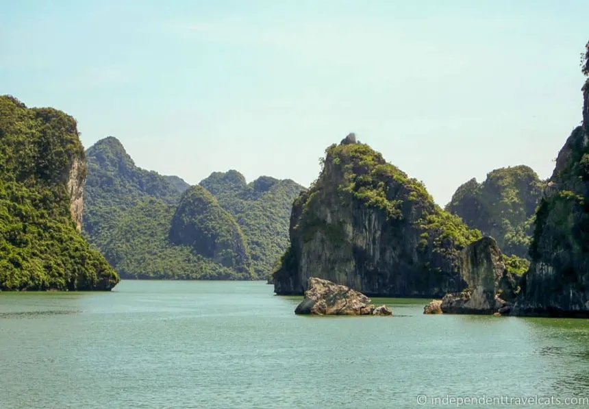 Travel to Ha Long Bay and board a traditional cruise for a 2-day nautical adventure . Enjoy a seafood lunch while sailing past limestone formations, explore a hidden cave, and spend the afternoon swimming or sunbathing before a sunset dinner on deck.