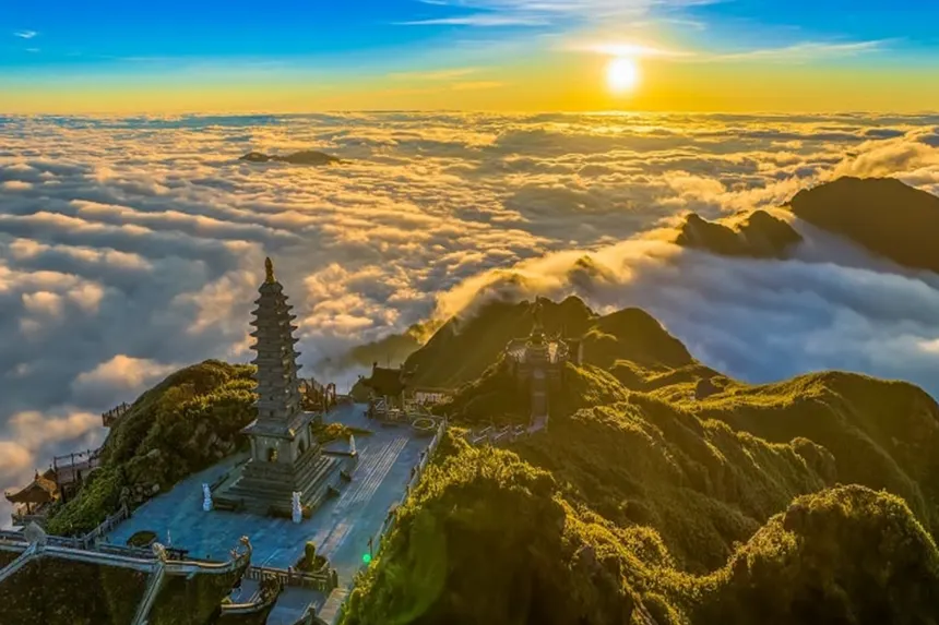 Take the world's most modern three-wire cable car to Fansipan Mountain, reaching an altitude of 2,800 meters . Hike to the very peak for panoramic views before visiting the spiritual cultural complex . In the afternoon, return to Hanoi for your overnight stay.